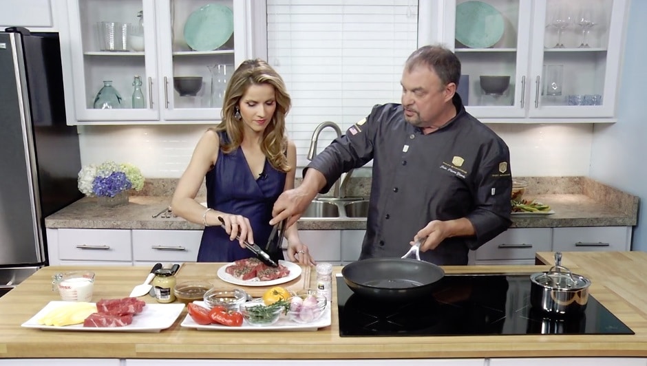 Executive Chef JP Guerin from Rocky Mountaineer prepares one of the delicious dishes you can enjoy on the luxurious train traveling through the western U.S. and Canadian Rockies.
